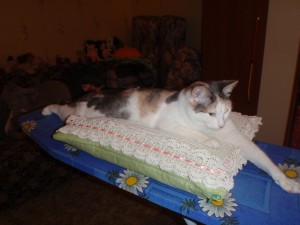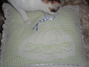 Анжела проверяет на мягкость. Ей понравилось, долго не могла согнать, пришлось убрать подушку в шкаф, до следующего дня =)