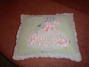 Осенила меня идея как-то на сессии, сделать небольшой подарок маме на День рождение. Решила связать/сшить подушку. Вот что у меня получилось.
