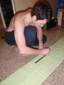 Раскраивает внешнюю наволочку )))