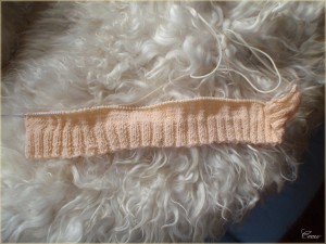 Провязав 3 см резинки, я перешла на обычную вязку (лицевые на лицевой стороне, изнаночные на изнаночной) и так вязала 8 см.