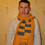 И вот долгожданный момент! Шарф довязан, коты вышиты, главный Кот вне себе от счастья =)