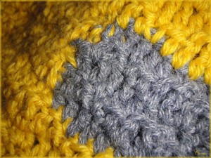Используемые материалы: крючок №3,5; пряжа Mondial Merinos Extra (Yellow) 224м/100 гр (2,5 мотка); пряжа Mondial Merinos Extra (Gray) 224м/100гр (0,6 мотка), гобеленовая игла, 8 пуговиц